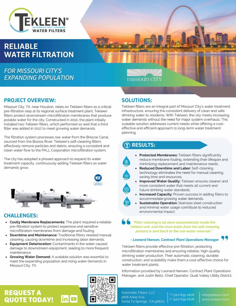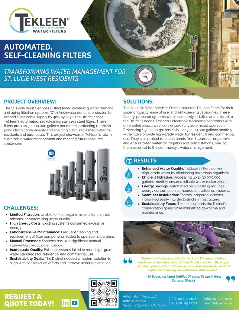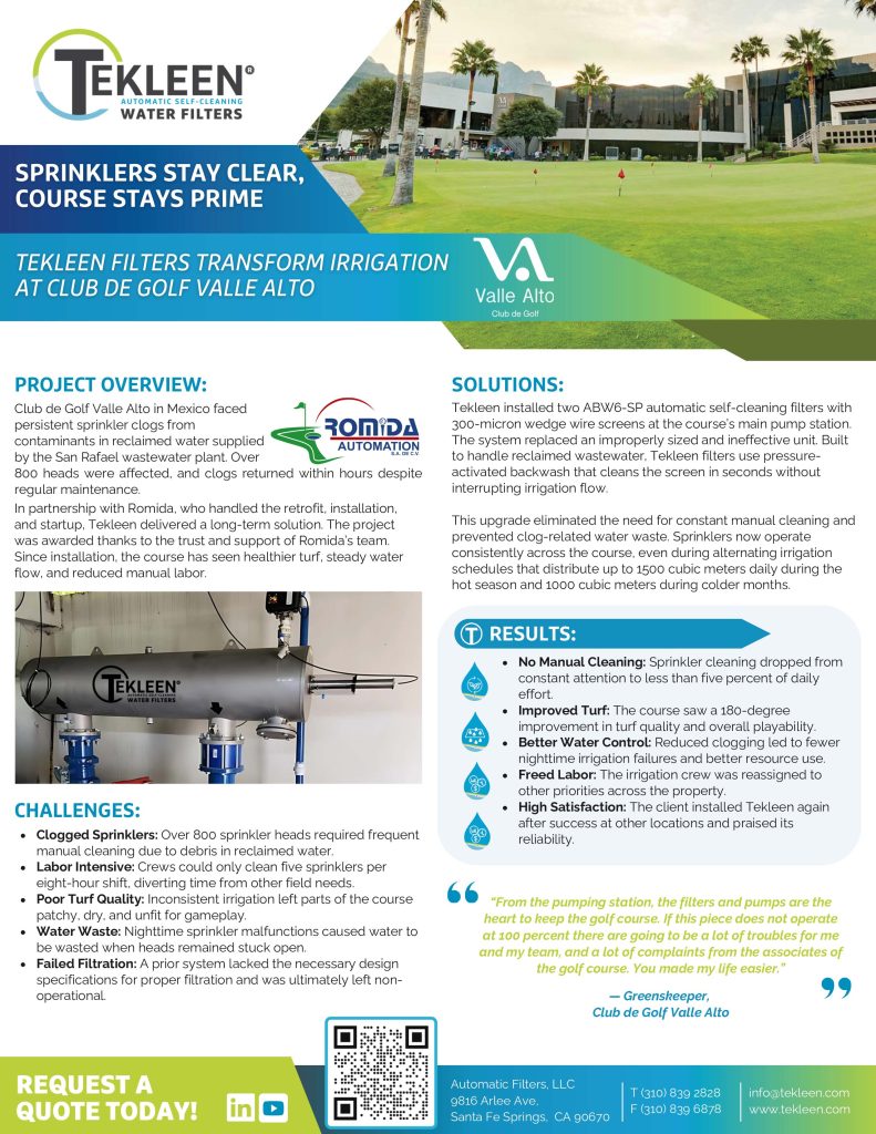 Explore how Tekleen solutions are deployed by leading organizations worldwide. These case studies showcase real world applications, engineered approaches, and performance outcomes across industrial, municipal, irrigation, and commercial environments.